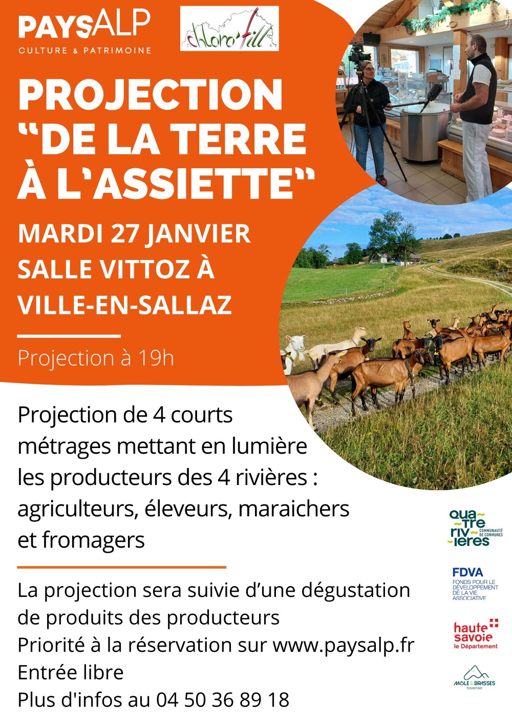 Aujourd’hui, PAYSALP lance un nouveau projet en partenariat avec l’association Chloro’fill : une série de courts métrages documentaires consacrés aux producteurs locaux — maraîchers, fromagers, agriculteurs, éleveurs — qui façonnent au quotidien le paysage et l’identité du territoire des 4 rivières.